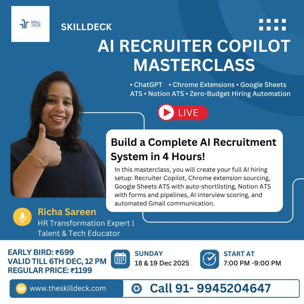 HR practitioners with some domain experience aiming to elevate to strategic business partners via technical mastery of AI Recruiter Copilot Masterclass.