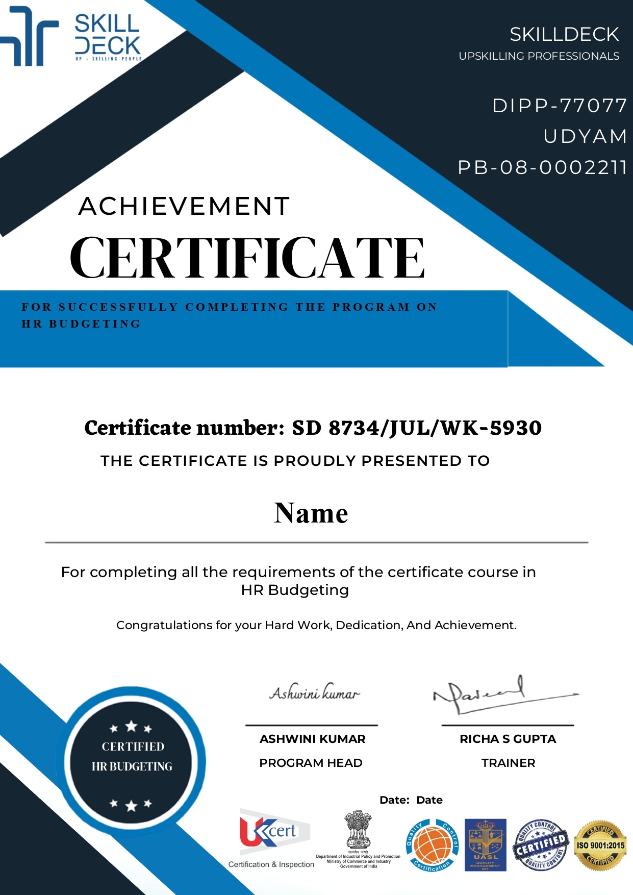 Post Completion of the training, get Course Completion Certification of HR Budgeting & Policies Program from The SkillDeck®
